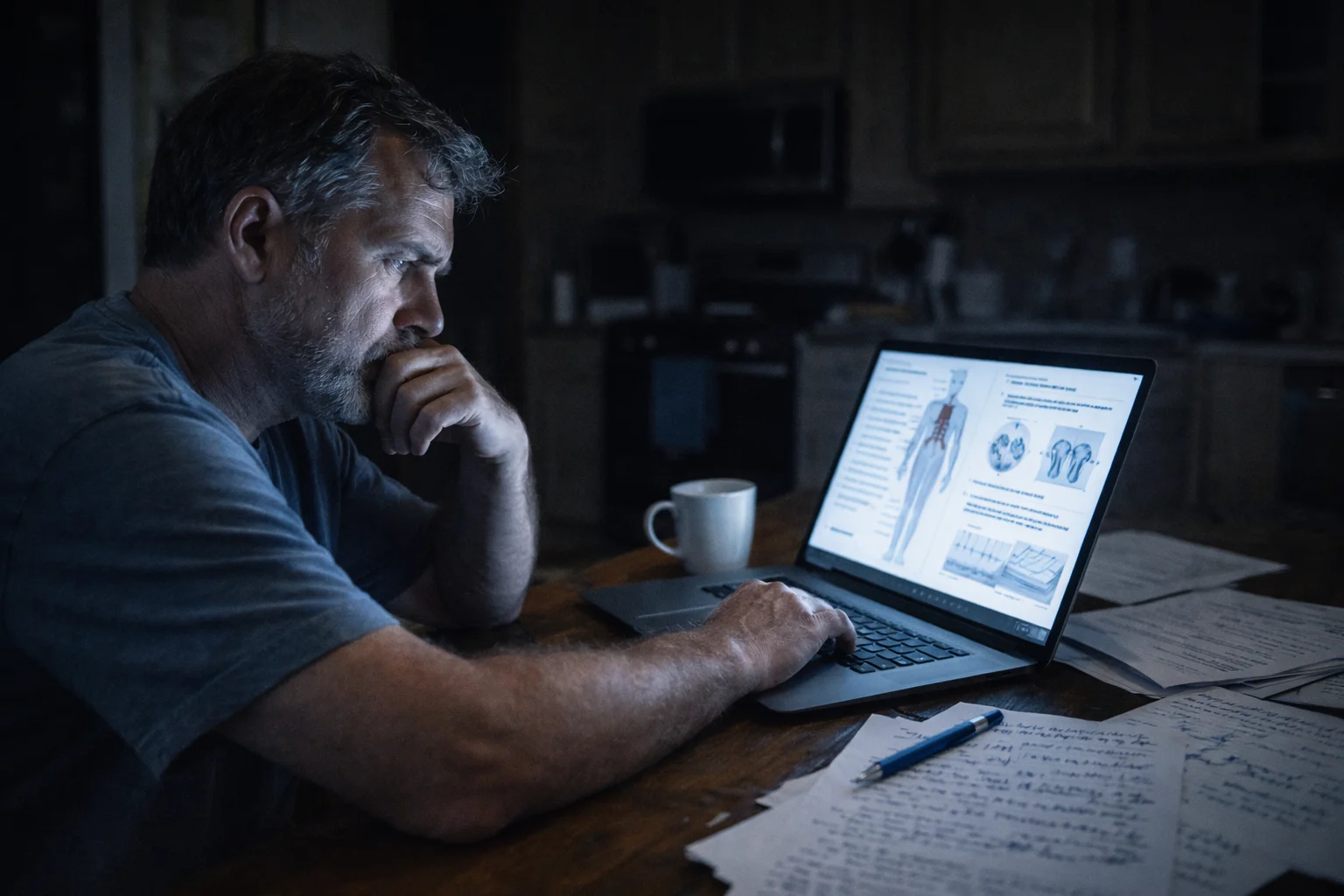 Forums full of people with eerily similar stories. Reddit threads that read like his own diary. Medical journal abstracts that he barely understood but tried to puzzle through anyway, looking up terms in separate tabs, building a vocabulary of his own dysfunction.